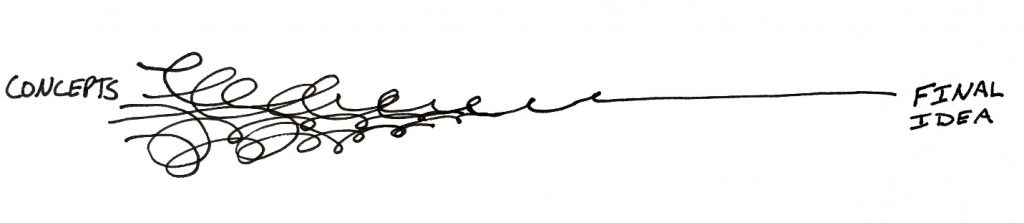 Nhiều khái niệm thô được đưa vào và tiến triển thông qua nhiều vòng lặp tinh chỉnh cho đến khi một khái niệm rõ ràng xuất hiện dưới dạng sản phẩm cuối cùng.
